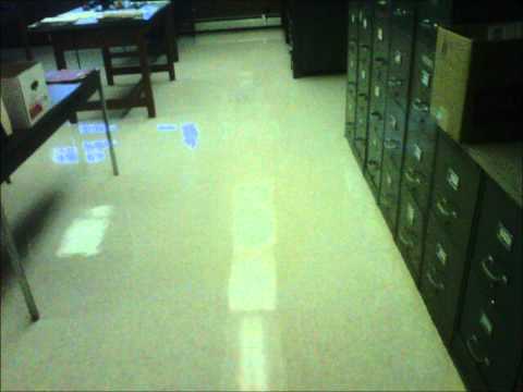 First we power scrub the old floor finish off using a floor machine and floor stripper. Then vacuum and rinse to neutralize the high alkaline floor stripper.